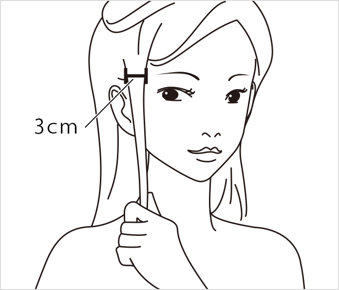 (1) Take a section of your hair about 3 cm in width.