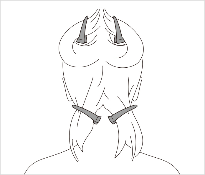 • (2) Divide your hair into sections and fix them in place with hair clips.