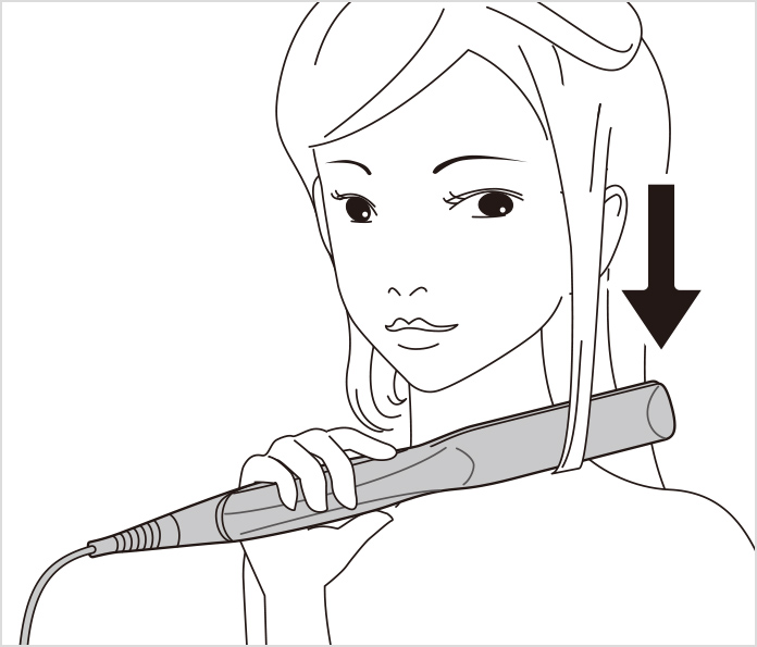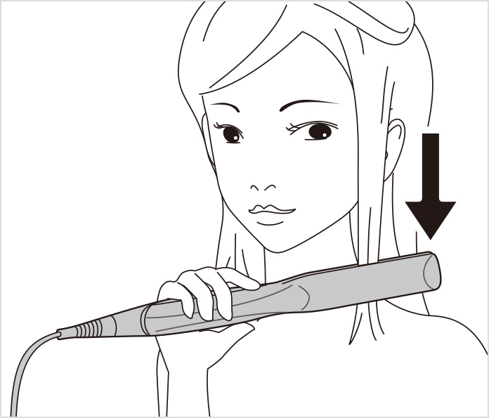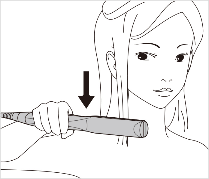 • (3) Slide the iron down to the tips of the hair in a slow, steady motion.
