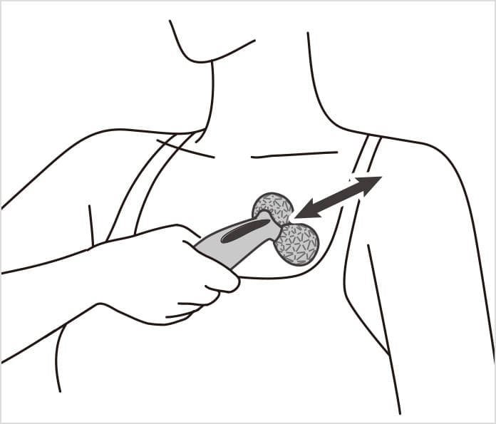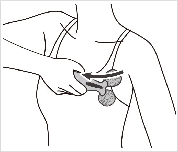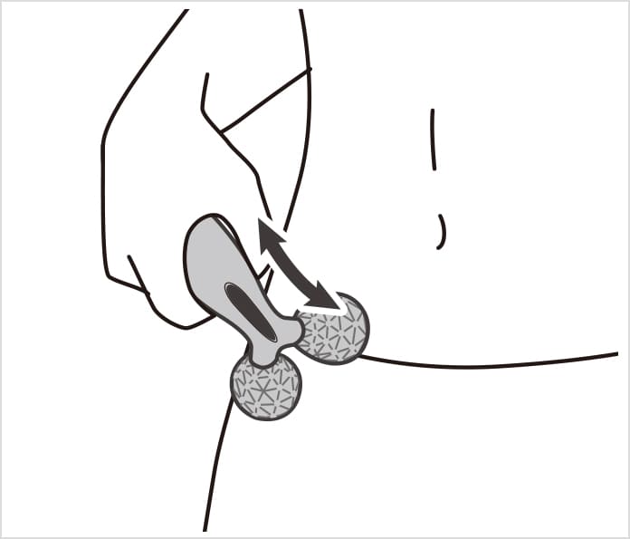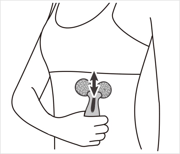 • Sandwich the flesh between thumb and forefinger with the rollers, and move the roller pressed against the back of your hand in a semicircular motion.