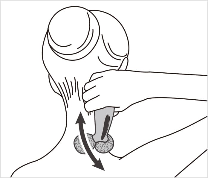 Roll gently along your neck and shoulder in smooth, continuous motions.