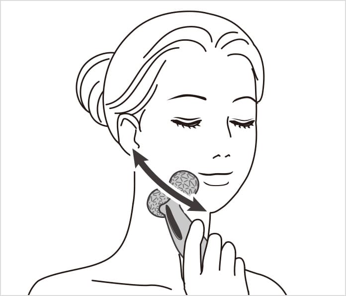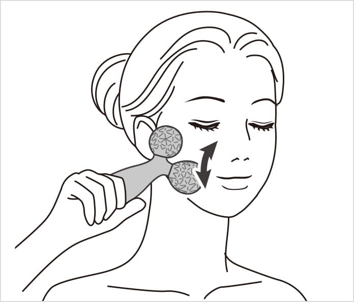 • Roll up and down between the corner of your mouth and the side of your nose. While doing this, lift your cheek upward with one roller.