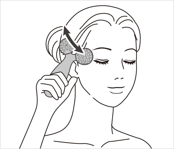 • Position one roller above the outer corner of your eye and roll it along the side of the head.