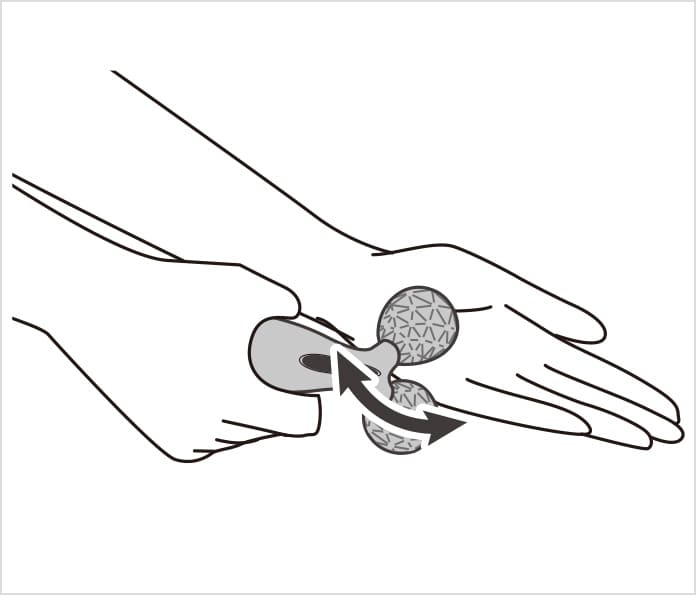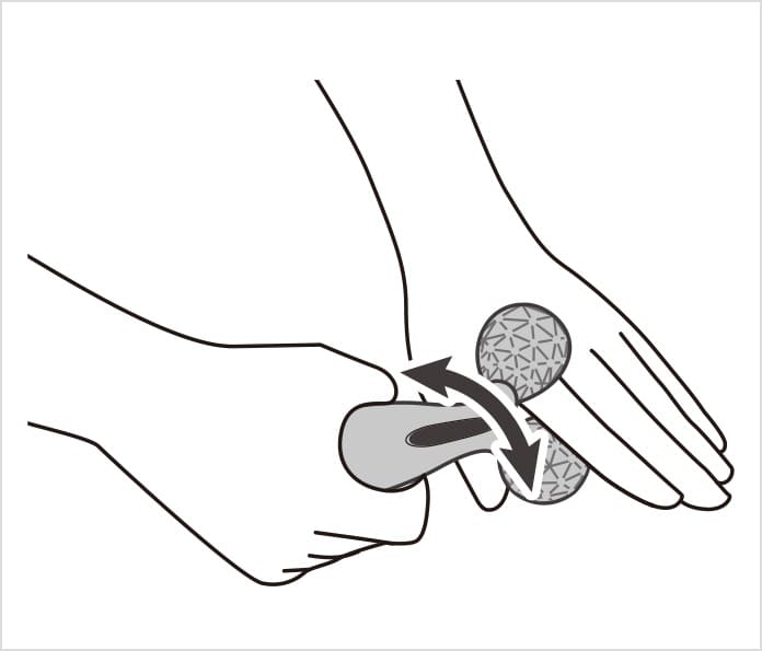 • Pressing against the center of the fleshy portion of your palm between your wrist and your little finger, roll towards your little finger.