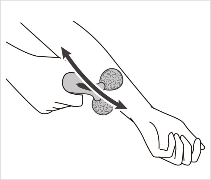 • Roll from your wrist to your elbow, as if holding the inside of your elbow between the rollers.