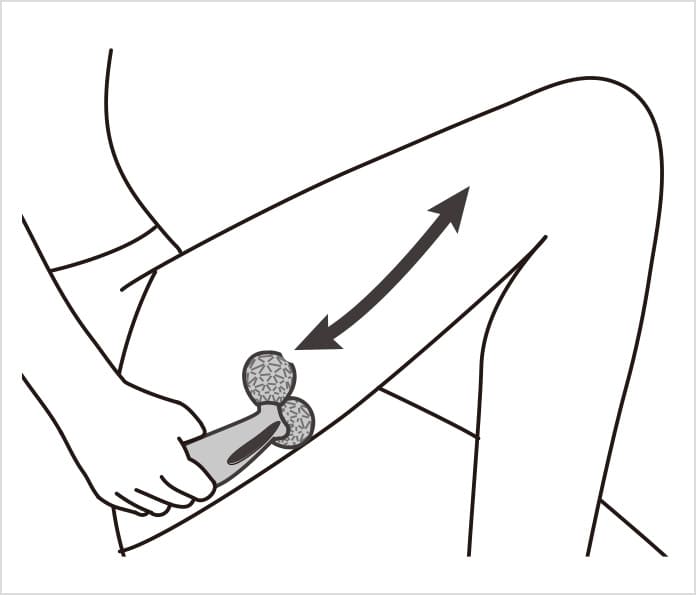 • Roll the area along the back of your thighs between your buttocks and the back of your knees.