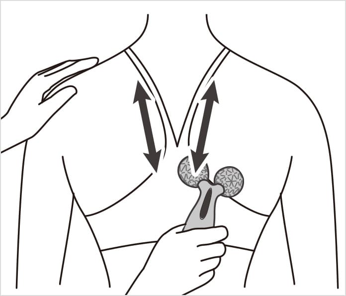 Roll on the back, which is hard to reach yourself. Roll up and down along your shoulder blades.