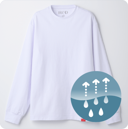 優れた吸水速乾性により、汗をかいてもべたつかず、さらっとした肌ざわり。一年を通して快適に着ることができます。