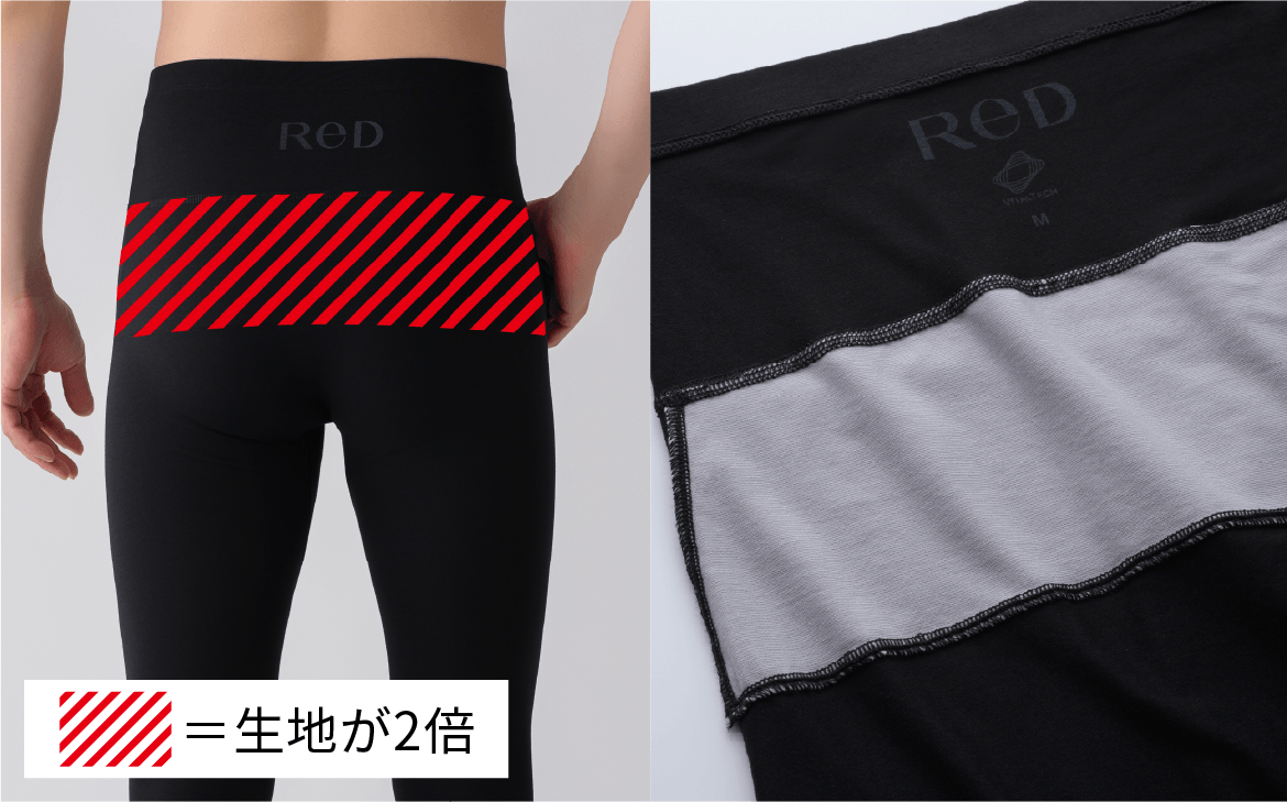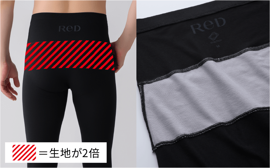 寒い季節でも使いやすい、足首まで覆うロング丈のインナーボトムスです。いつものインナーをReDにかえるだけで、血行促進・疲労回復をかなえます。
