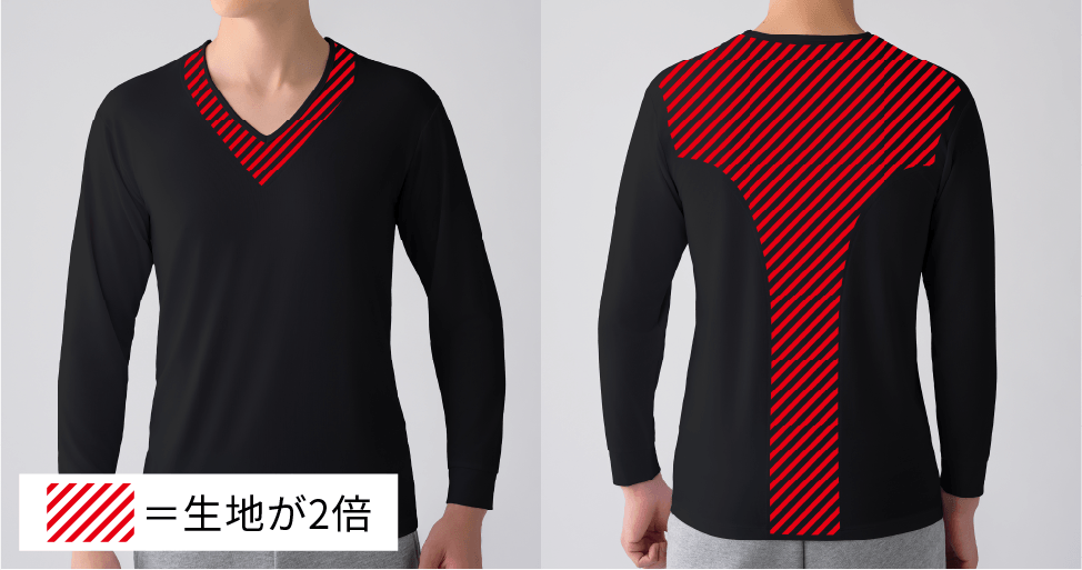 VITALTECH®を使用した生地を二重にすることで肌により密着。コリに対して集中的にアプローチします。血行促進の効果で積極的に肩コリ・腰コリを改善します。