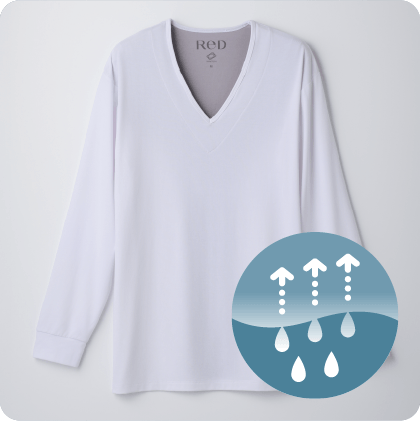 寒い季節でも使いやすい、手首まで覆う長袖インナーです。いつものインナーをReDにかえるだけで、血行促進・疲労回復をかなえます。
