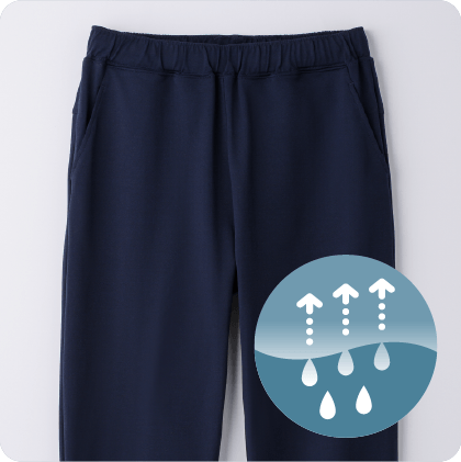 優れた吸水速乾性により、汗をかいてもべたつかず、さらっとした肌ざわり。一年を通して快適に着ることができます。