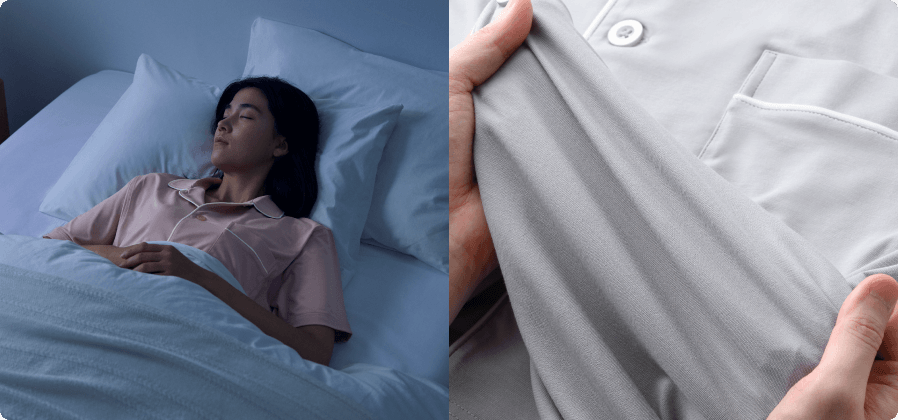 優れた吸水速乾性により、寝汗をかいてもべたつかず、さらっとした肌ざわり。一晩中快適な寝心地です。