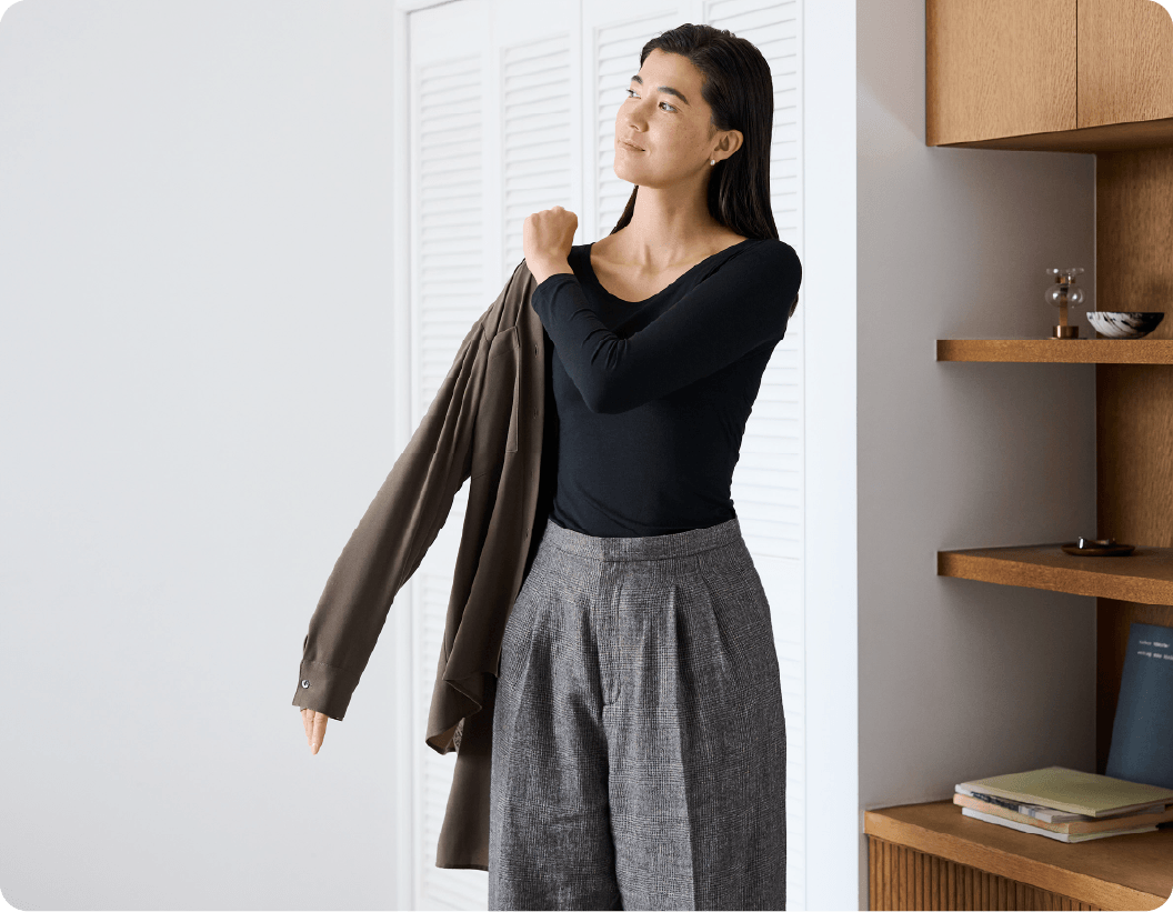 レーヨンを含んだなめらかな生地が、やさしく包み込むような着心地を実現しています。