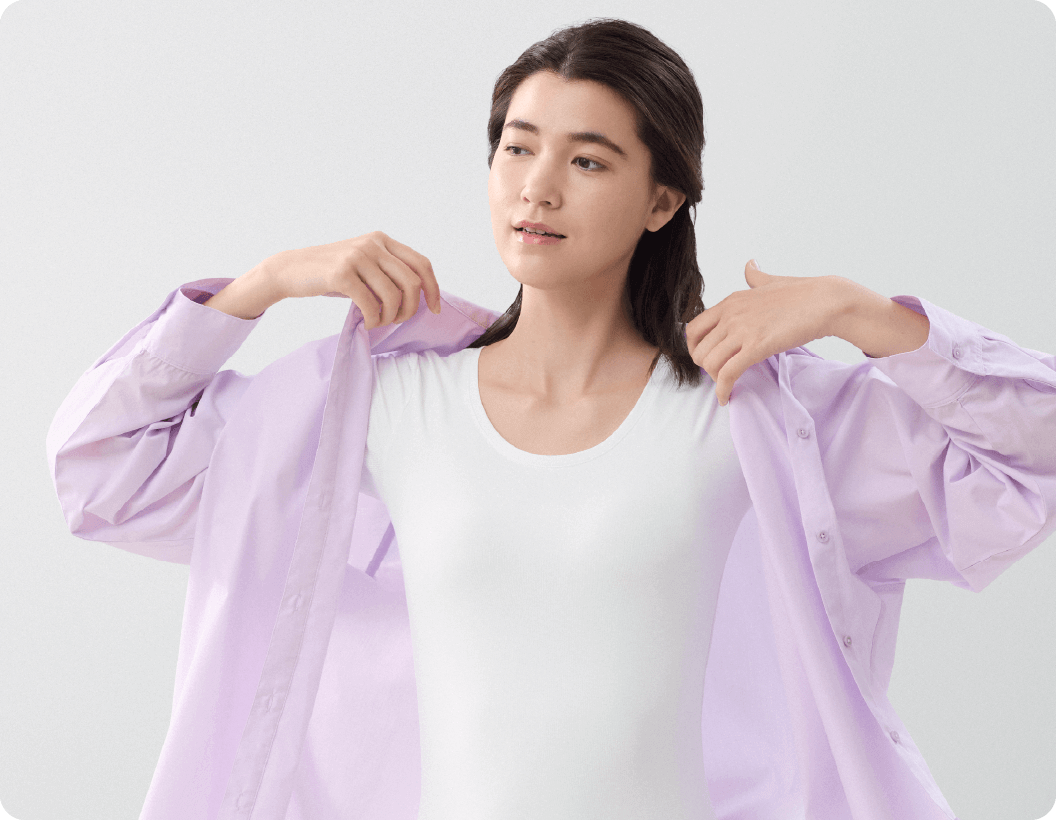 優れた吸水速乾性により、汗をかいてもべたつかず、さらっとした肌ざわり。一年を通して快適に着ることができます。