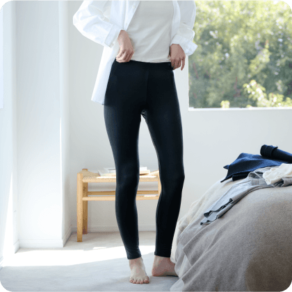 下半身の疲れに着目した、寒い季節に活躍するレギンスタイプです。長い丈でふくらはぎまでカバーして血行促進します。