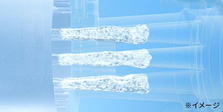 水にバブルを充満させることで放出する水量が減るため、節水にも。