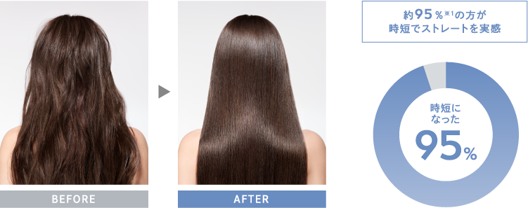 従来のストレートアイロン※1と比較して、1回でのストレート性能が29%アップ※2。広がりやすい強いうねりにもしっかり熱と圧を与えることで、まとまり感やツヤ感まで向上させます。