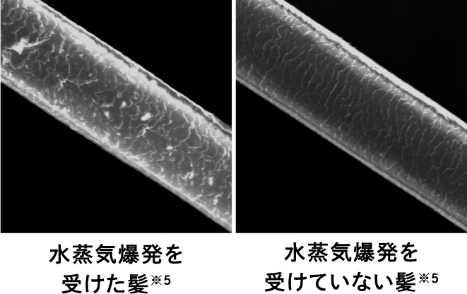 高温のプレートに水があたると水蒸気爆発※4が起こり、キューティクルが傷つく原因になります。幅広カーボンレイヤープレートは、三層構造により熱の伝わり方をマイルドにし、水蒸気爆発※4を防ぐことで髪へのダメージを軽減します。