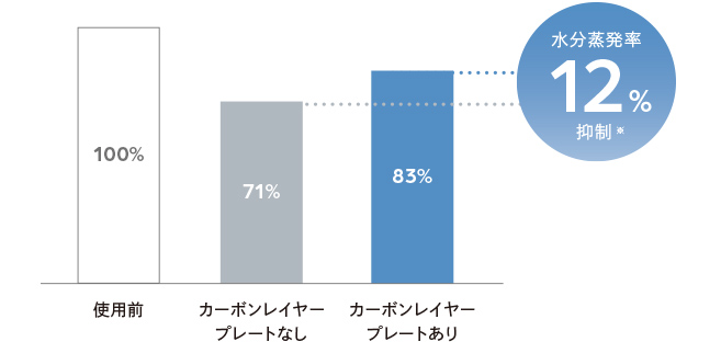 カーボンレイヤープレートが髪の水分蒸散を抑え、うるおいをキープ。