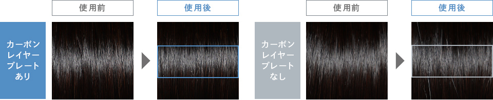 カーボンレイヤープレートは、熱ダメージによる色素破壊やカラー剤の流出を軽減※。