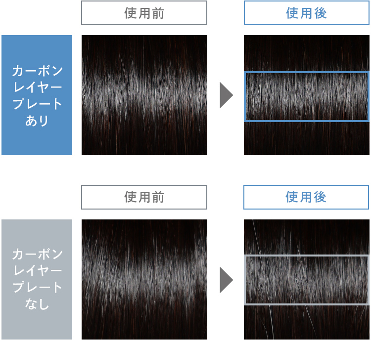 カーボンレイヤープレートが、乾燥による広がりを防ぎながら、美しいストレートヘアをキープ。