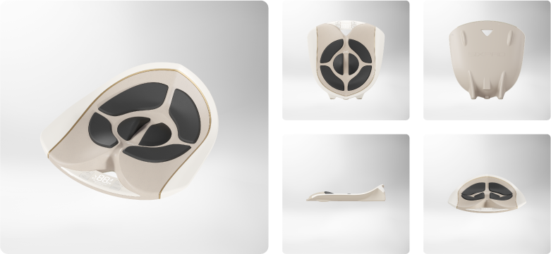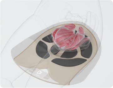 身体の奥にある骨盤底筋へ電気刺激をしっかり届けるため、高さにこだわった電極形状「3Dフォルム」を開発。股まわりに密着し、骨盤底筋をピンポイントで刺激することが可能になりました。