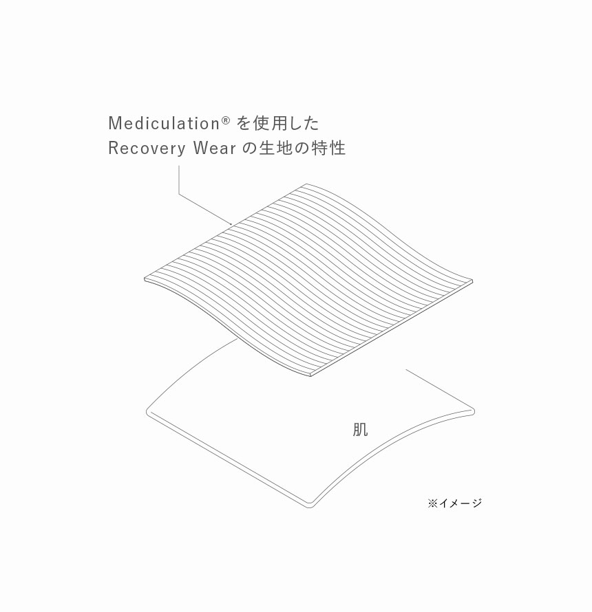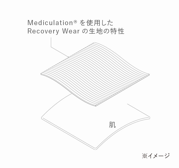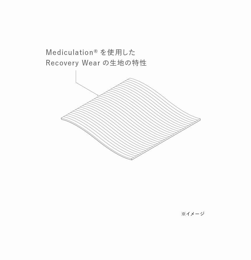 独自の特殊繊維 "Mediculation™(メディキュレーション)"を使用した衣類型の一般医療機器として、血行促進、筋肉の疲れの軽減・ハリやコリの緩和など、着るだけで疲労回復の効果があるので、トレーニングをした日をメインに愛用しています -