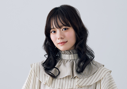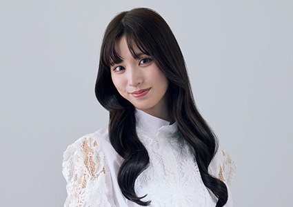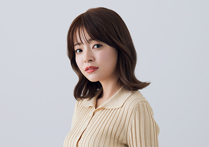 ミディアムヘアでも毛先を大きく巻いて外ハネをつくれば、小顔効果※もある旬のスタイルに。