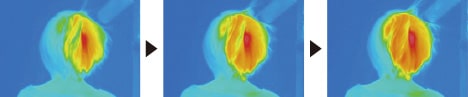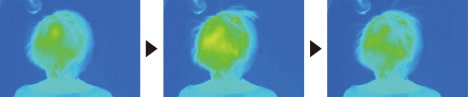 サーモグラフィカメラ(日本アビオニクス社)を使用し、髪表面の温度変化を測定。