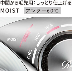 毛先のためのプロセンシング・アンダー60℃とハイドロイオンで、オーバードライによる乾かしすぎを防ぎ、髪のうるおいを逃がしません。