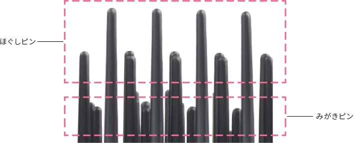 先端をまるく加工したピンが、頭皮を心地よく刺激します。