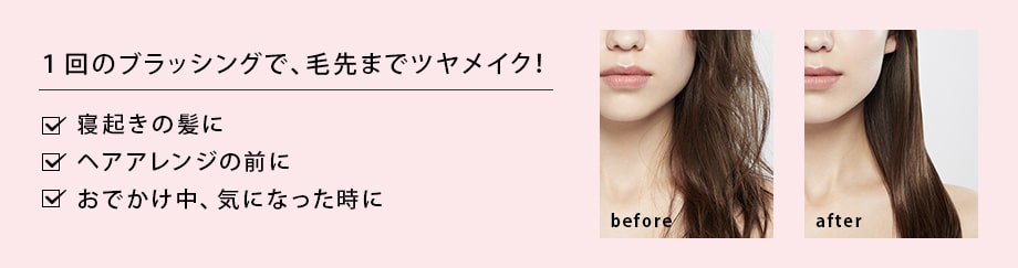 髪の表面をなでるようにブラッシングします。ツヤを取り戻し、指通りもなめらかに。