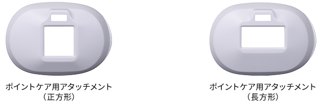広範囲に照射できるボディ用アタッチメントに加え、2種類のポイントケア用アタッチメントを付属。
