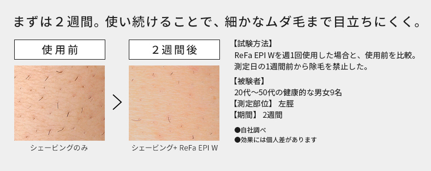 照射口から広範囲に光を照射するスムーズなムダ毛ケアでまずは2週間※からツルスベ肌を実感。