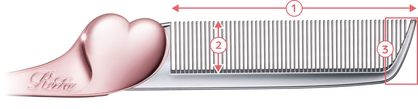 歯の長さを浅くすることで、レイヤーが入ったばらつきやすいサイドの毛束をしっかりキャッチ。