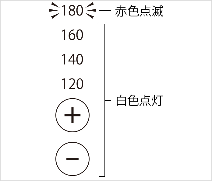 温度表示ランプと「+」、「-」ランプが白色点灯し、設定温度※が赤色点滅します。