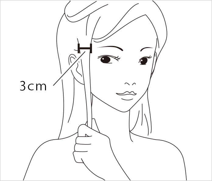 毛束をわけて、ヘアクリップで留めてください。