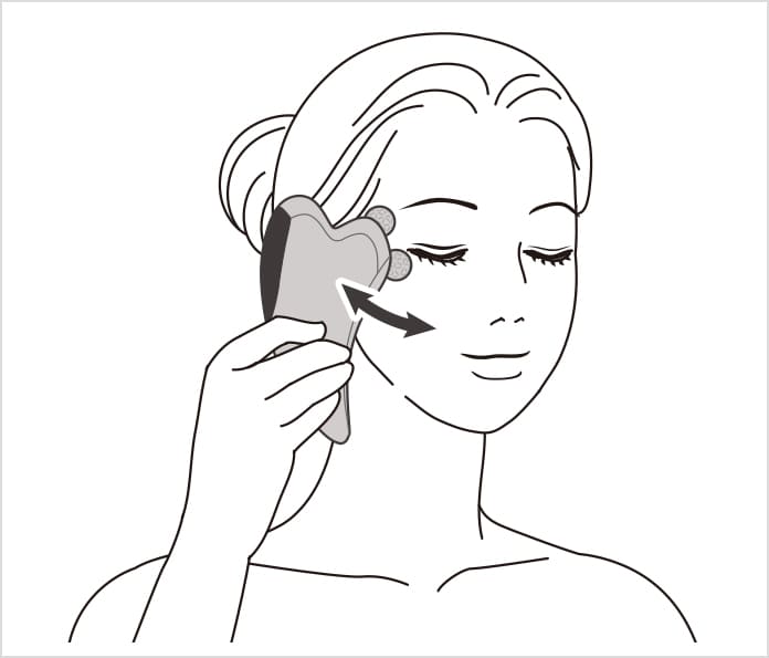 肌に密着させ、上に向かってすくい上げるように動かします。