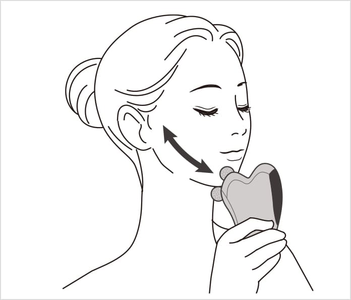 あご先から耳横へ向かい、フェイスラインに沿ってつまみ流します。