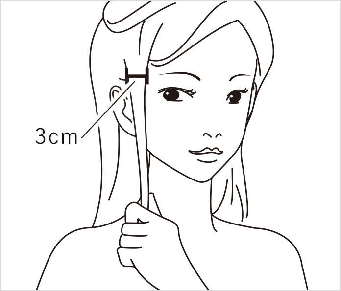 (1)毛束を幅約3cmとります。