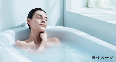 シャワーヘッドを浴槽に入れると、なめらかな肌ざわりのシルキーバスに。肌をやわらかく包みこむので、心も身体も温まります。