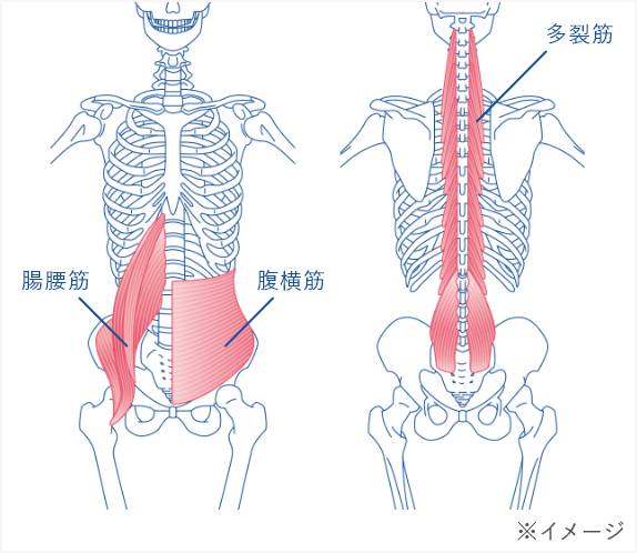 特に体幹のインナーマッスル(腹横筋・多裂筋・腸腰筋)が弱いと、