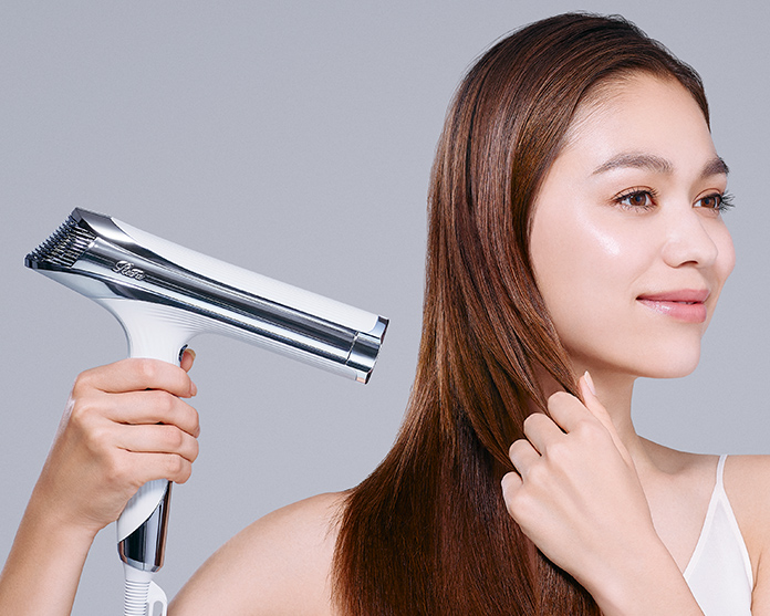 最后,将风速档位切换至LOW,紧接着按下COOL按钮启动低风速冷风模式,对全部发丝进行冷风定型,锁住完美造型。