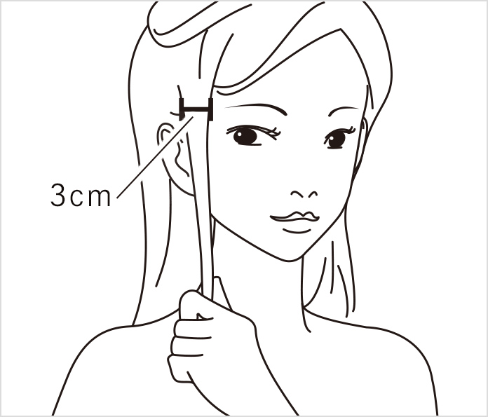 (4)轻轻握住发夹柄,在发夹略微张开的状态下向下滑动,放开头发。