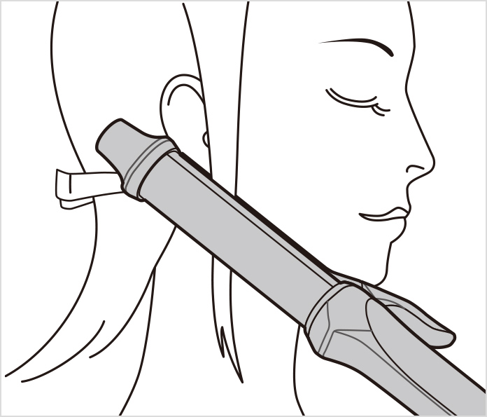 (2)将卷发器的发夹朝内,用发热卷筒中央夹住需要上卷的头发位置,然后将卷发器稍微倾向需要卷起的方向。