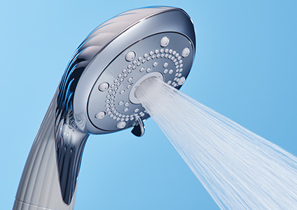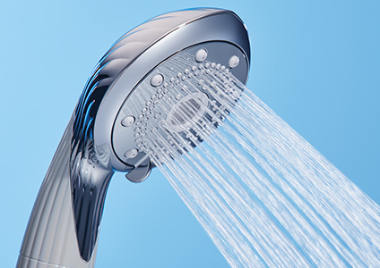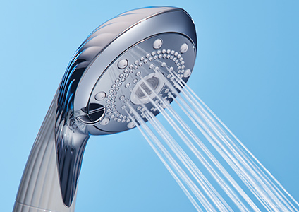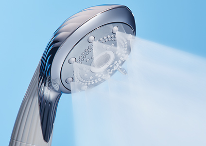从不锈钢板中流出的细密水流。即使肌肤敏感的人士也可以充分沐浴。
