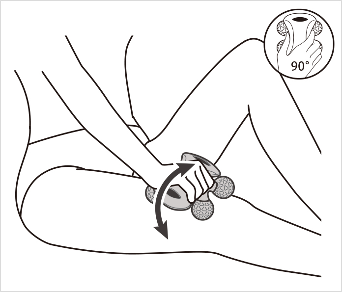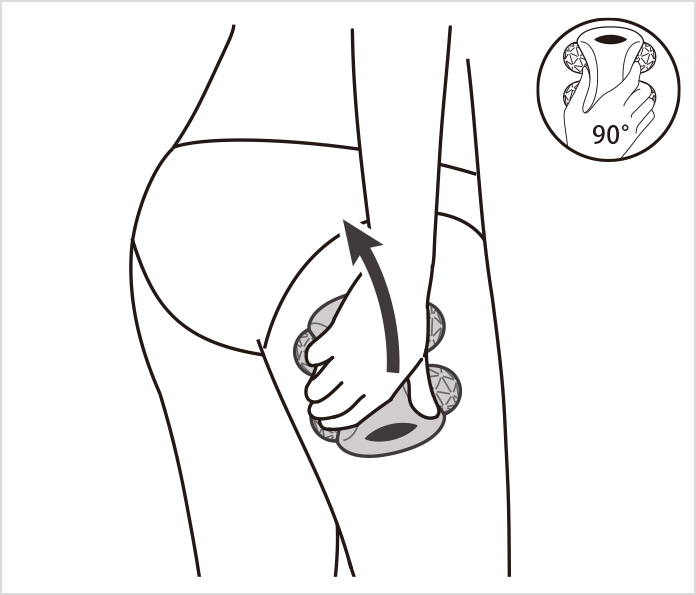 从膝盖上方朝向大腿根部滚压大腿外侧。