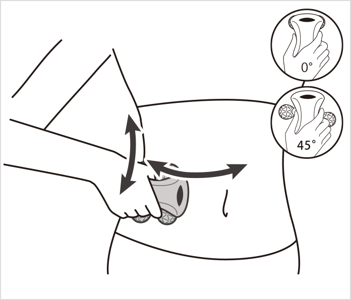 ※该部位皮肤易被滚轮夹住。请适当调整滚轮的滚动强度后,再滚压皮肤。