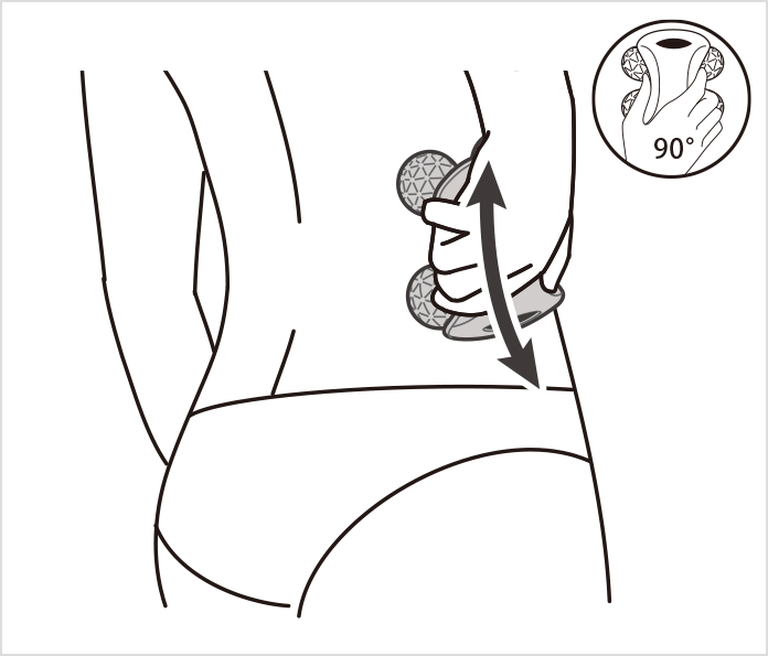 滚动按摩自己难以护理的背部。沿着肩胛骨上下滚动。
